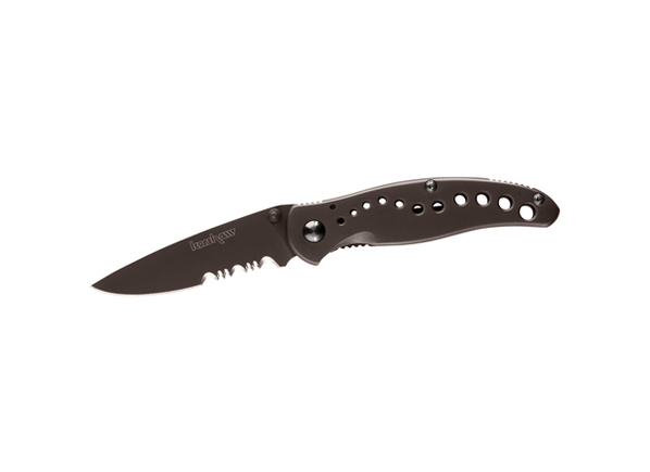 The Vapor has a unique "drilled" industrial design. The blade is made of AUS6A stainless-steel with Titanium Carbo-Nitride coating and allows for one-handed opening. The handle is built with heat-treated, high strength 410 steel. Dimensions: blade 3", handle 4", Wt. 3.2 oz.